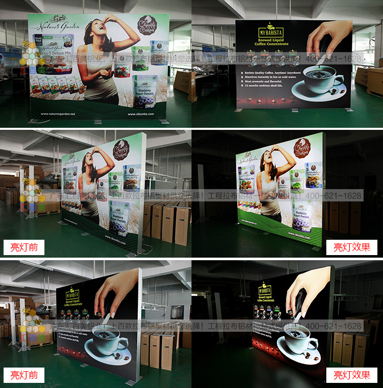案例說(shuō)明:160mm雙面卡布燈箱,一個(gè)燈箱,兩個(gè)廣告,將廣告范圍擴(kuò)大化,充分利用空間,廣告效益擴(kuò)大化!這款燈箱美的品牌是用于美國(guó)展覽展會(huì)展示廣告,無(wú)邊框設(shè)計(jì)展示廣告,無(wú)視覺(jué)阻礙觀看廣告更舒適更容易映入消費(fèi)者眼簾,更亮,更美,更真實(shí)!可以直接將廣告植入人心!雙面廣告卡布燈箱可以以吊掛式、立式、嵌墻式展示廣告,形式多樣多彩!客戶可以根據(jù)不同環(huán)境場(chǎng)合選用不同的展示形式!