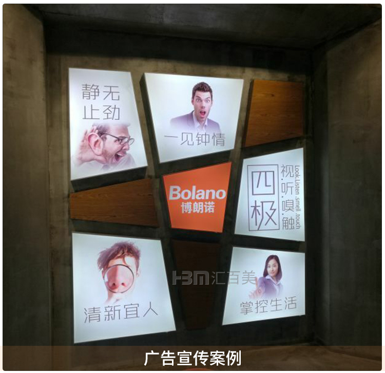 產(chǎn)品簡介:多邊形軟膜卡布燈箱——是一款創(chuàng)新型廣告,以梯形、三角形、菱形等多邊不規(guī)則圖形組成一個具有特色的能體現(xiàn)企業(yè)文化形象的廣告,也是2017年新型廣告之一,燈箱效果獲得備受客戶好評。...