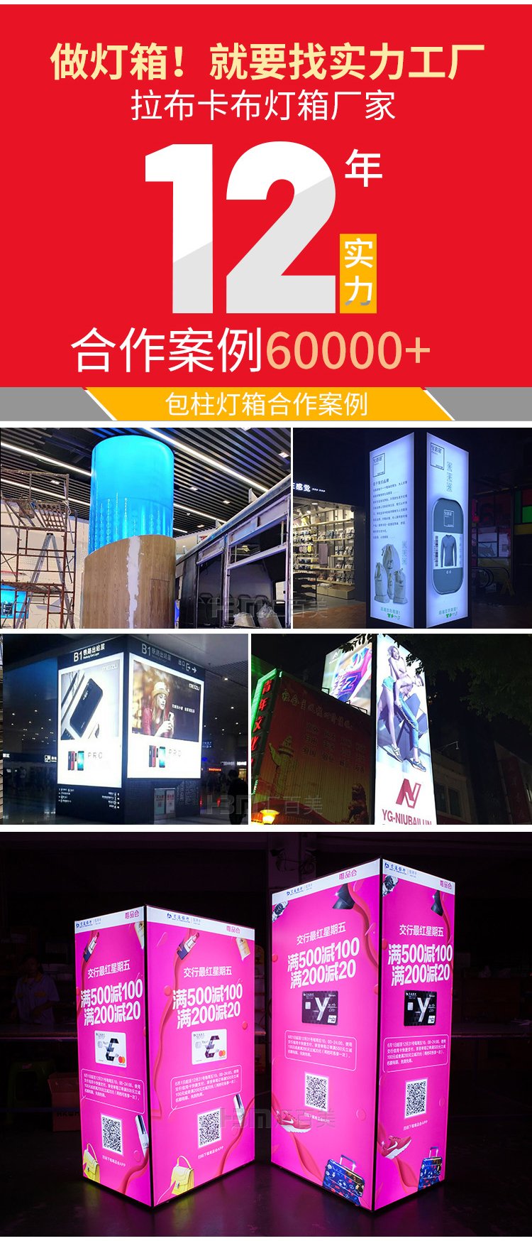 產(chǎn)品簡介:匯百美包柱燈箱——突破單一的廣告宣傳,全方位四面展示廣告,充分利用空間,廣告效益擴大化!...