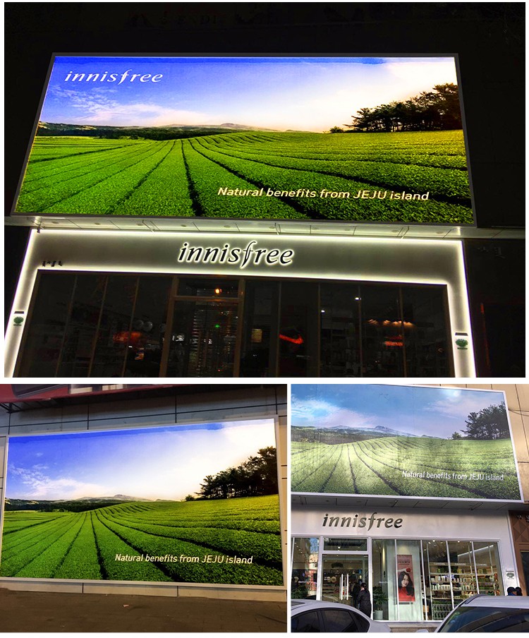 產(chǎn)品簡介:化妝品門頭燈箱光源采用防水款3030漫反射,因?yàn)樵撻T店在當(dāng)風(fēng)口處,所以燈箱內(nèi)部加用了防風(fēng)支架以防大風(fēng)將畫面吹貼導(dǎo)致排骨紋,燈箱的邊框是采用HBMAX-P-101-120,這款3.3壁厚的型材承重非常強(qiáng)...