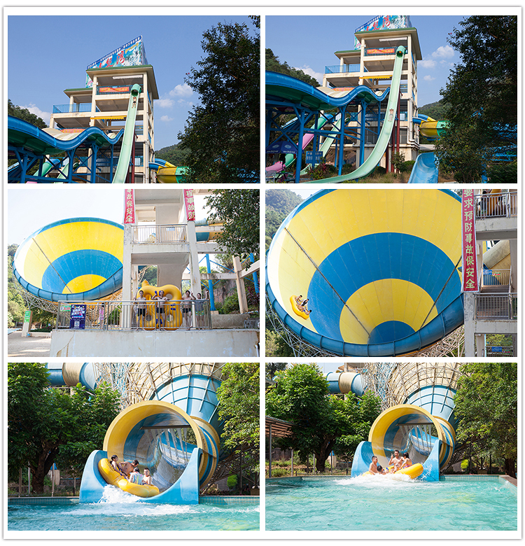 太空盤漩渦滑道、浪擺滑道、高速滑道、炮筒滑道、雪撬滑道、彩虹滑道、螺旋滑道等一應俱全。尤其以高25米的高速滑道、刺激的大喇叭最具挑戰(zhàn)性!