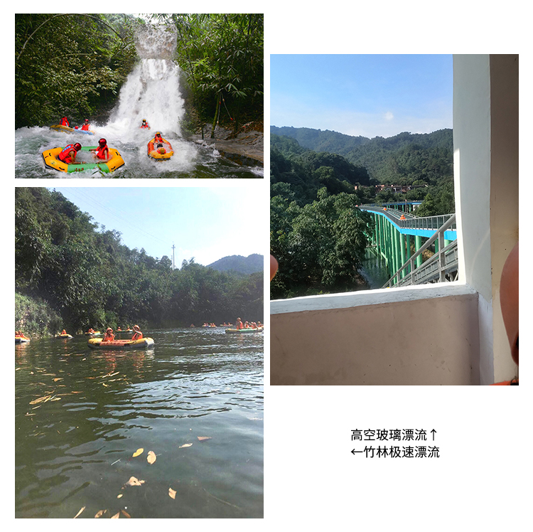 在動感水城玩了兩個小時,匯百美的親們就開始挑戰(zhàn)“驚險刺激”的竹林極速漂流和高空玻璃漂流。穿梭于竹林、幽潭、怪石、險灘之中,山泉瀑布飛短流長,兩旁古藤纏樹,腳下溪流水石混然天成,清澈見底,當還陶醉于大自然的原生態(tài)之時,座下的皮艇已如脫疆野馬,極速奔騰而去??!