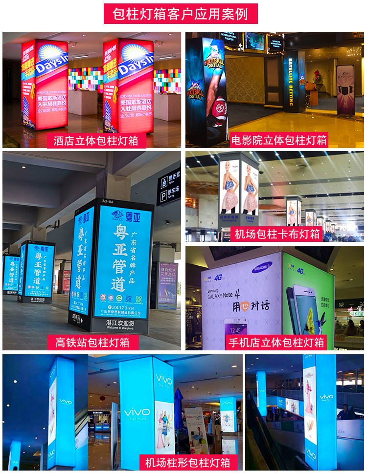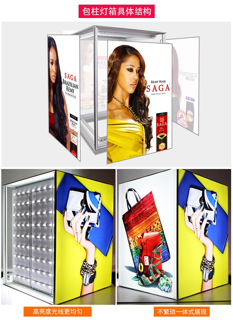 產(chǎn)品簡介:匯百美包柱燈箱——突破單一的廣告宣傳,全方位四面展示廣告,充分利用空間,廣告效益擴(kuò)大化!...