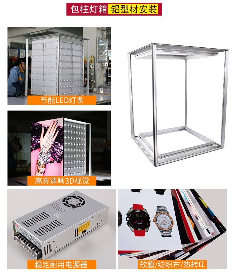 2017新款立體包柱燈箱無邊框柱型四面拉布燈箱廣告牌