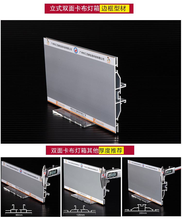 產(chǎn)品簡介:160mm雙面卡布燈箱,一個燈箱,兩個廣告,充分利用空間,廣告效益擴大化!常應(yīng)用于展覽展會/營業(yè)店面雙面櫥窗展示廣告,無邊框設(shè)計可以更全面展示廣告,無視覺阻礙觀看。...