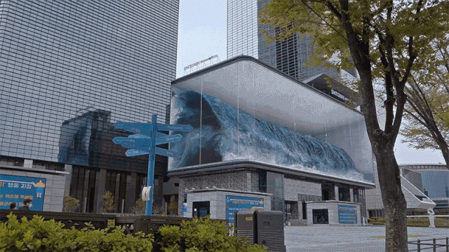 事實(shí)上,這是一個(gè)LED曲面屏的戶(hù)外裝置,來(lái)自三星的 Smart LED,通過(guò)技術(shù)模擬海浪達(dá)成的逼真效果。最近,小編也收集了一些創(chuàng)意戶(hù)外,在這里分享給大家。希望能帶給大家一些靈感~