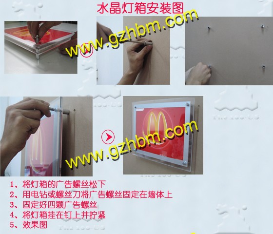 即使超薄燈箱的安裝很簡(jiǎn)單,但是仍有客戶會(huì)問(wèn)到,能不能包安裝?像水晶燈箱安裝就是將廣告螺絲安裝在墻體上,然后將廣告螺絲擰緊固定就可以了,鋁材則可以用掛鉤的方式安裝,那也是很簡(jiǎn)單的一種方式,吊掛式的LED燈箱在安裝上可能會(huì)稍微難一點(diǎn),但是有說(shuō)明書的話應(yīng)該對(duì)客戶來(lái)說(shuō)也不是見難事。