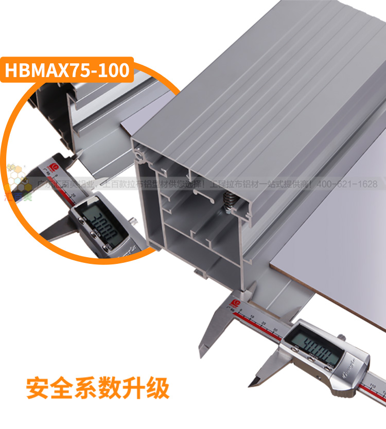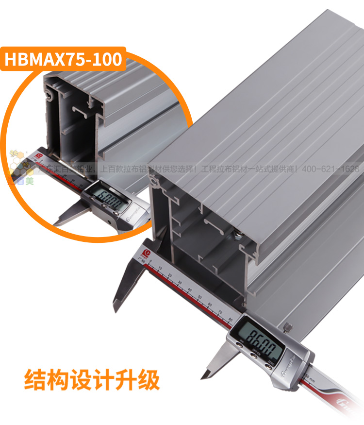 HBMAX75-100是以往我司非常具有工程實(shí)力的一款鋁型材,訂購(gòu)客戶有廣州南站高鐵站,萬(wàn)科大樓,萬(wàn)達(dá)商業(yè)廣場(chǎng)等高端客戶!新品鋁型材相比HBMAX-75-100款鋁型材增加底部受力面,由原來(lái)工程款的60mm寬度升級(jí)到達(dá)86mm,另外由四條加厚壁厚的鋁邊組成的三個(gè)受力面分散受力,受力更均勻,安裝更穩(wěn)固!