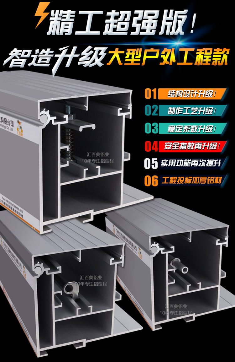 工程類(lèi)鋁型材是國(guó)標(biāo)級(jí)工程鋁型材!專(zhuān)業(yè)私模設(shè)計(jì)、行業(yè)無(wú)同款安全性能好并且高端優(yōu)質(zhì)的拉布燈箱型材,該款鋁型材全體壁厚加厚加固底部壁厚達(dá)到3.3mm,,就連鋁材面蓋壁厚也達(dá)到了2.0mm,通體加固加厚,針對(duì)超過(guò)30㎡以上廣告燈箱研發(fā),承受重力強(qiáng)、拉畫(huà)不變形!該鋁材包括HBMAX-X-101-120(工程至尊版)HBMAX-P-101-120(工程加強(qiáng)版)HBMAX-H-101-120(弧形加強(qiáng)版)三款。