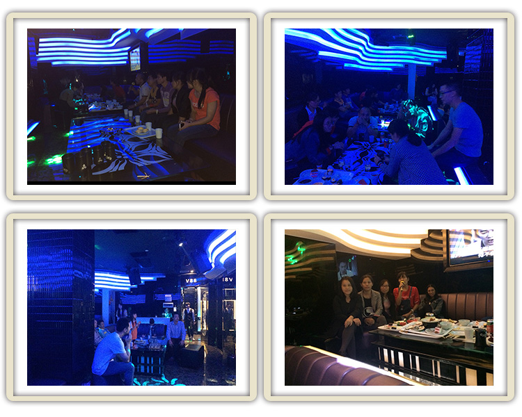 boss大人想的可真周到,3點準(zhǔn)時下班,因為有些同事需要回家梳洗一下的(平時都穿工服,所以出去就要美一下),然后4點半我們就集合出發(fā)長隆奧園,到達目的地,全體暫時將工作放一邊,“嗨”起來!唱累了吃,吃飽了就開喉大聲唱,不得不說的是,我們公司有好幾個同事歌聲真的是好聽的不要不要的,當(dāng)然,也有勇氣可加的,例如小編我,只能屬于勇氣可嘉型的,哈哈!不過在此時,重要的是得到放松,歌聲好聽的怡情應(yīng)景!歌喉不好聽的也惹得全場樂哄哄,此時此景,大家都沒大沒小,沒規(guī)沒矩的樂起來!大家都玩的盡情盡興!