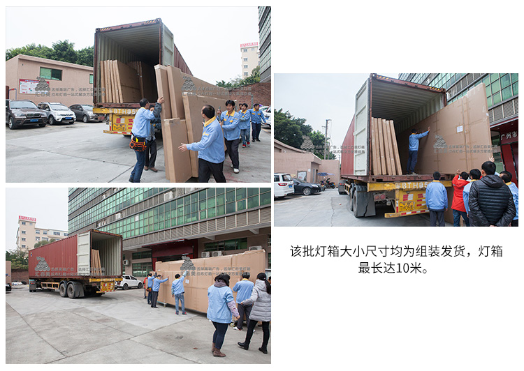 昨日,我們成功將第二批40尺柜發(fā)往卡塔爾的燈箱組裝裝柜完成踏上船航.....這幾天的連續(xù)雨水,讓出貨的進(jìn)程增加了難度,因?yàn)檫@批燈箱都是成品發(fā)貨,小的一米多,大的十幾米,還好天公作美,昨天早上,雨過天晴,下午裝柜時(shí),地板都已經(jīng)干了,全體員工一鼓作氣,忙到晚上7點(diǎn)多,成功將貨物裝上柜發(fā)往海外。