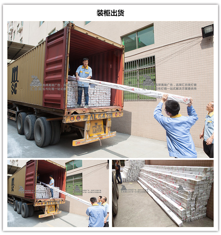 當下,正是廣告行業(yè)的采購旺季,工程訂單一波接一波不斷向我們“砸來”,除了國內(nèi)各大型工程的拉布燈箱的生產(chǎn)訂單,匯百美的海外客戶也沒有停止過“砸單”的腳步。今天,又有一批鋁型材即將遠航海外。