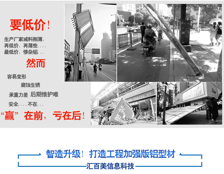如此以“薄”補(bǔ)數(shù),肯定是不行的!特別是對大于20平方米以上的大型廣告拉布燈箱,更是不行,如此這般,眼前投入是少,殊不知?質(zhì)量的問題導(dǎo)致更多繁瑣的后期維護(hù)問題,而且安全卻是一個不可彌補(bǔ)的大問題!所以制作大型拉布燈箱、戶外拉布燈箱一定一定不能只看眼前利益,要追求長期投放和后期維護(hù)的問題.......所以,升級加強(qiáng)款3.3mm壁厚鋁型材來襲!